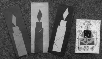 Слева: работы детей 1 класса. Конструирование свечи может быть использовано и как задание на субботнем конкурсе.