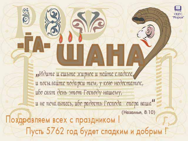 От всей души поздравляем Вас с праздником Рош ha-Шана и Новым 5762 годом!