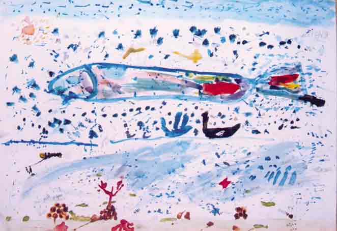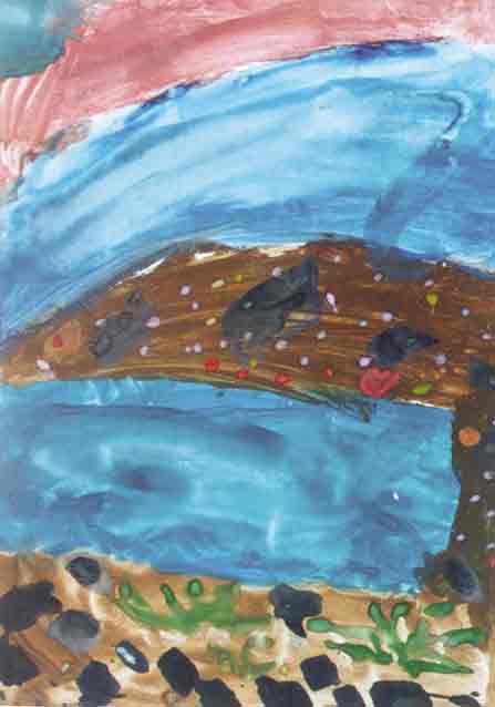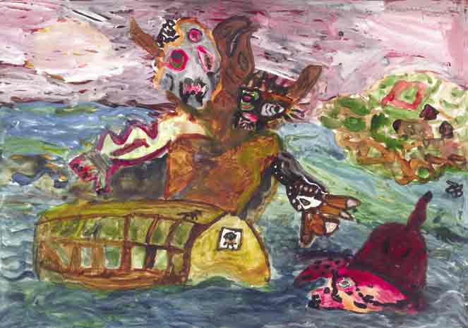 «Creation of Fishes and Leviatan», Vasya Knotenko, 8 yo, paper, gouache,  42x29 mm