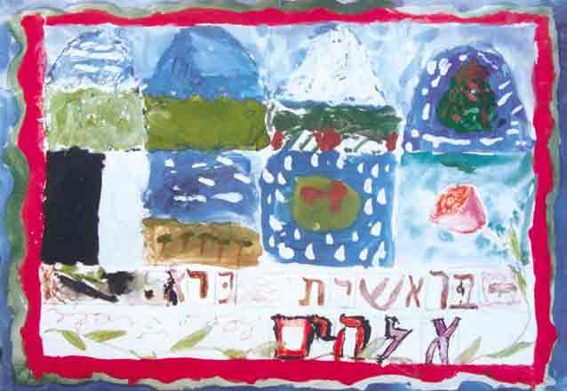 In the picture by the 7-years-old Olya Zinger we can see the Earth on the Third day of Creation. The plain text of Torah describing the origin of plants is contradictory in the first and second chapters of the Book Bereshit.
