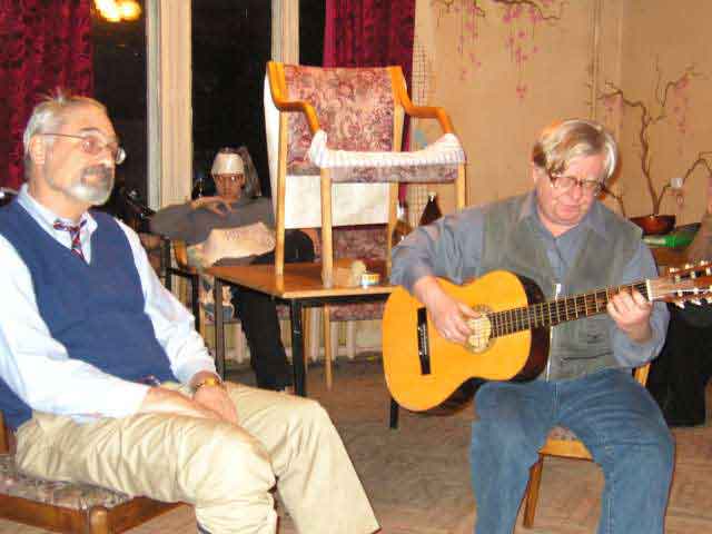 ![]() Мартин Горвиц исполняет песню Б.Акуджавы "А шарик летит" (фрагмент капустника). Фото: Джонатан Оррен |