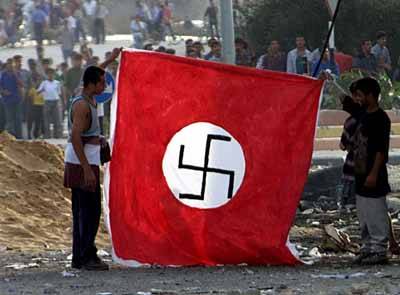 В эти дни очевидно, что за множеством стягов, реющих над арабскими толпами по обе стороны "зеленой черты", скрывается последовательная и бескомпромиссная идеология, отрицающая за евреями право на существование. Ее истинным знаменем является гитлеровский флаг, любовно изготовленный палестинцами в Газе и вынесенный на всеобщее обозрение к перекрестку Нецарим.