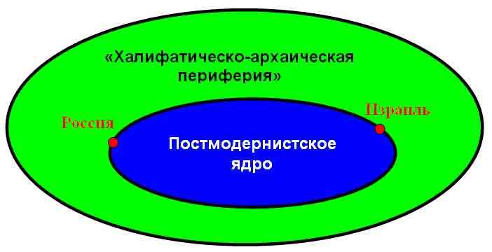 Подобная конструкция проблематична вообще. Но особо проблематична она для двух стран – России и Израиля, включение которых в постмодернистское ядро стоит под большим вопросом. Причины, по которым этот вопрос возникает, носят разный характер, но мы в обоих случаях отмечаем принципиальные трудности, связанные со включением и России, и Израиля в западный континуум, а также наличие на Западе влиятельных сил, которые активно противятся такому включению (рис. 2).