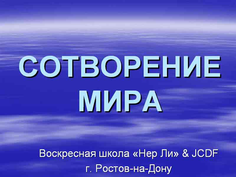 Презентация открытого урока по теме "СОТВОРЕНИЕ МИРА" Воскресная школа «Нер Ли» & JCDF, г. Ростов-на-Дону